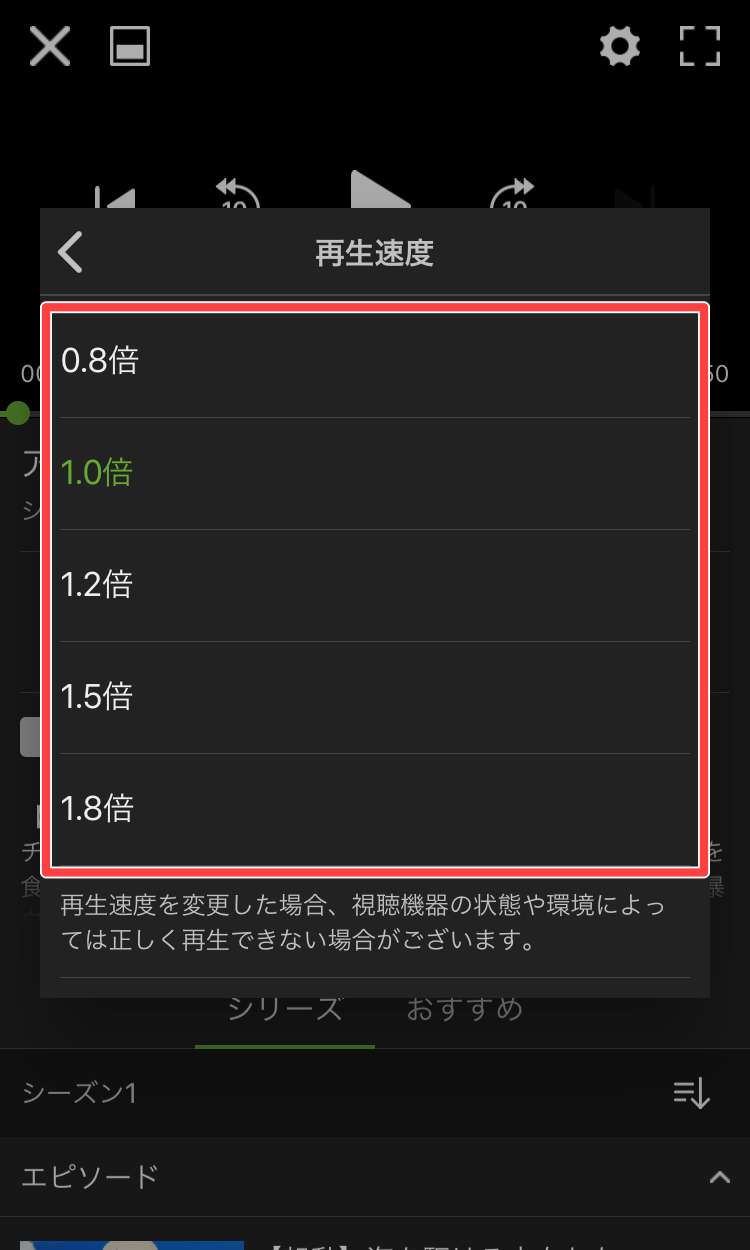 これでHuluアプリにて動画の再生速度を変更する事が簡単にできます。
