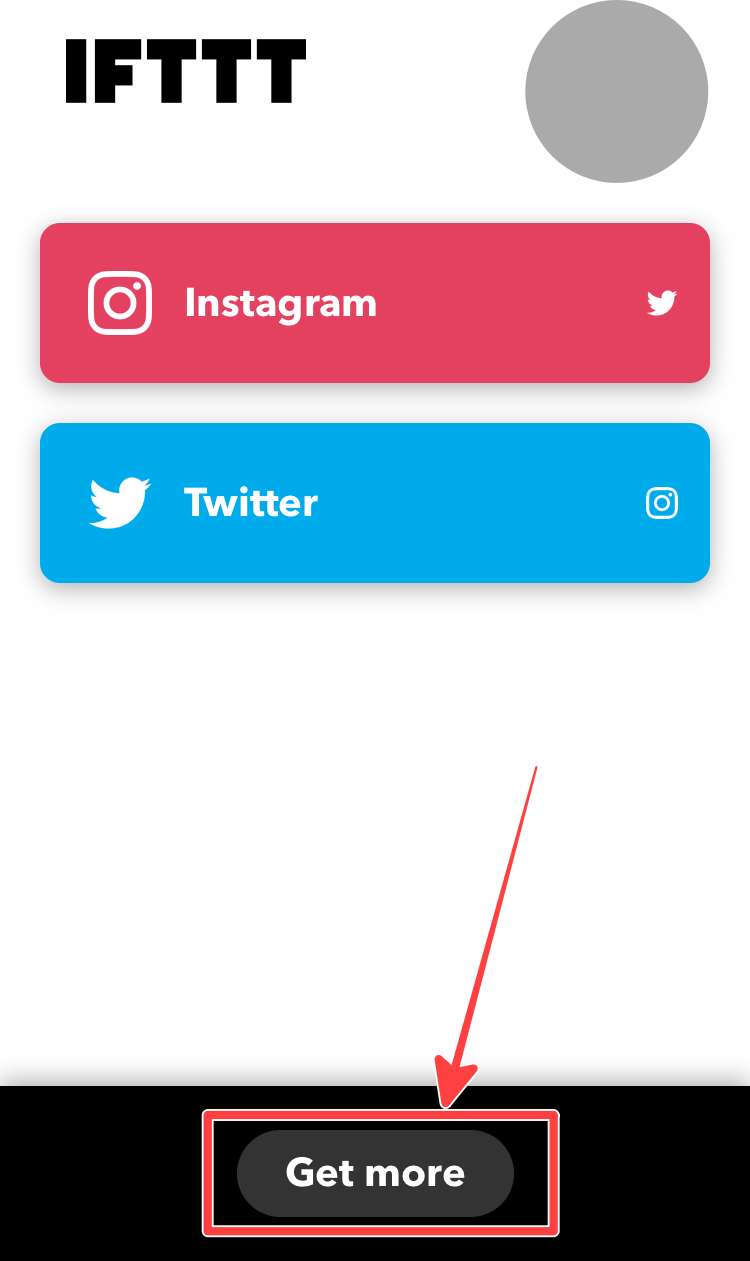 IFTTTにサインインして「Get more」をタップすると一番上に検索窓がありますので、検索窓に「インスタグラム」と入力すると、既に作成済みの設定が表示されます。