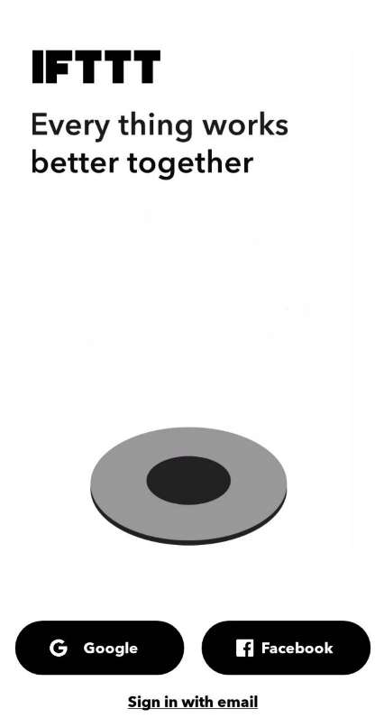 IFTTTアプリをインストールしたら、サインインする必要がありますので「Facebook」もしくは「Google」のアカウントを利用してIFTTTにサインインします。