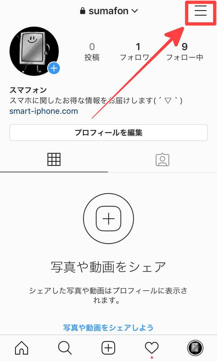 インスタグラムにログインしたら、人型マークが右上に表示されていますのでこちらをクリックします。