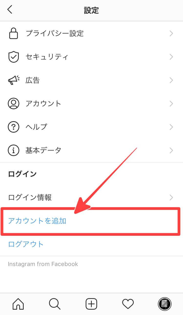 また、インスタグラムのアカウント追加方法には2つのパターンがあります。
