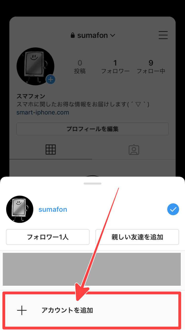 まず初めにインスタグラムのアカウント追加方法を紹介します。