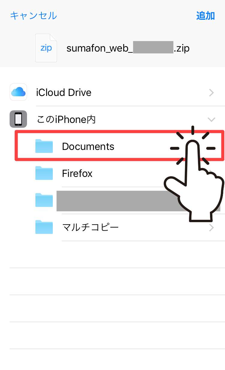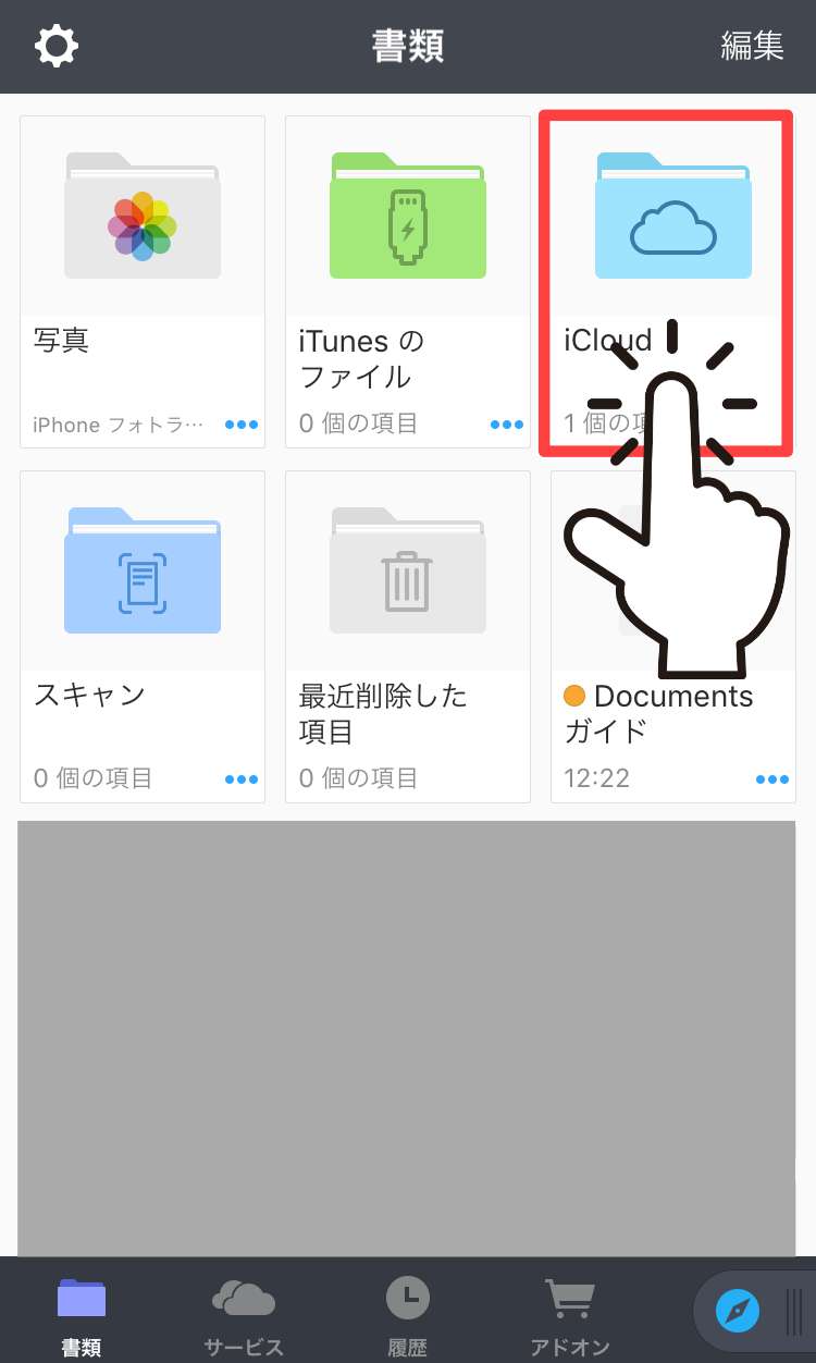 「Document by Readdle」を開いてから自分のユーザーネームの書かれてある青色のファイルをタップします。
