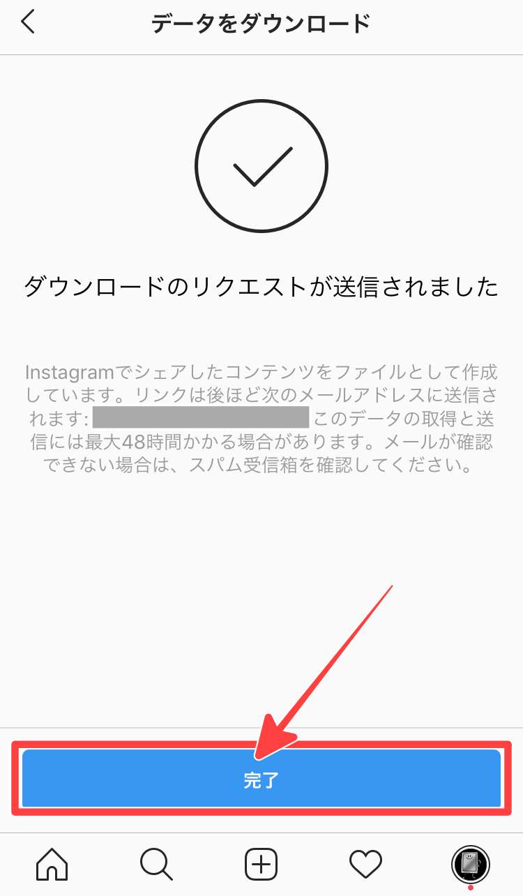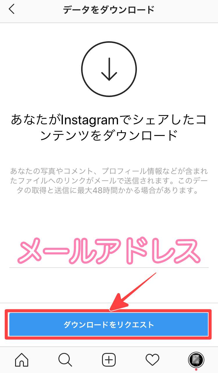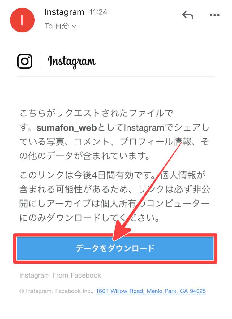 次に指定したメールアドレスにインスタグラムのデータが10分くらいで届きます。