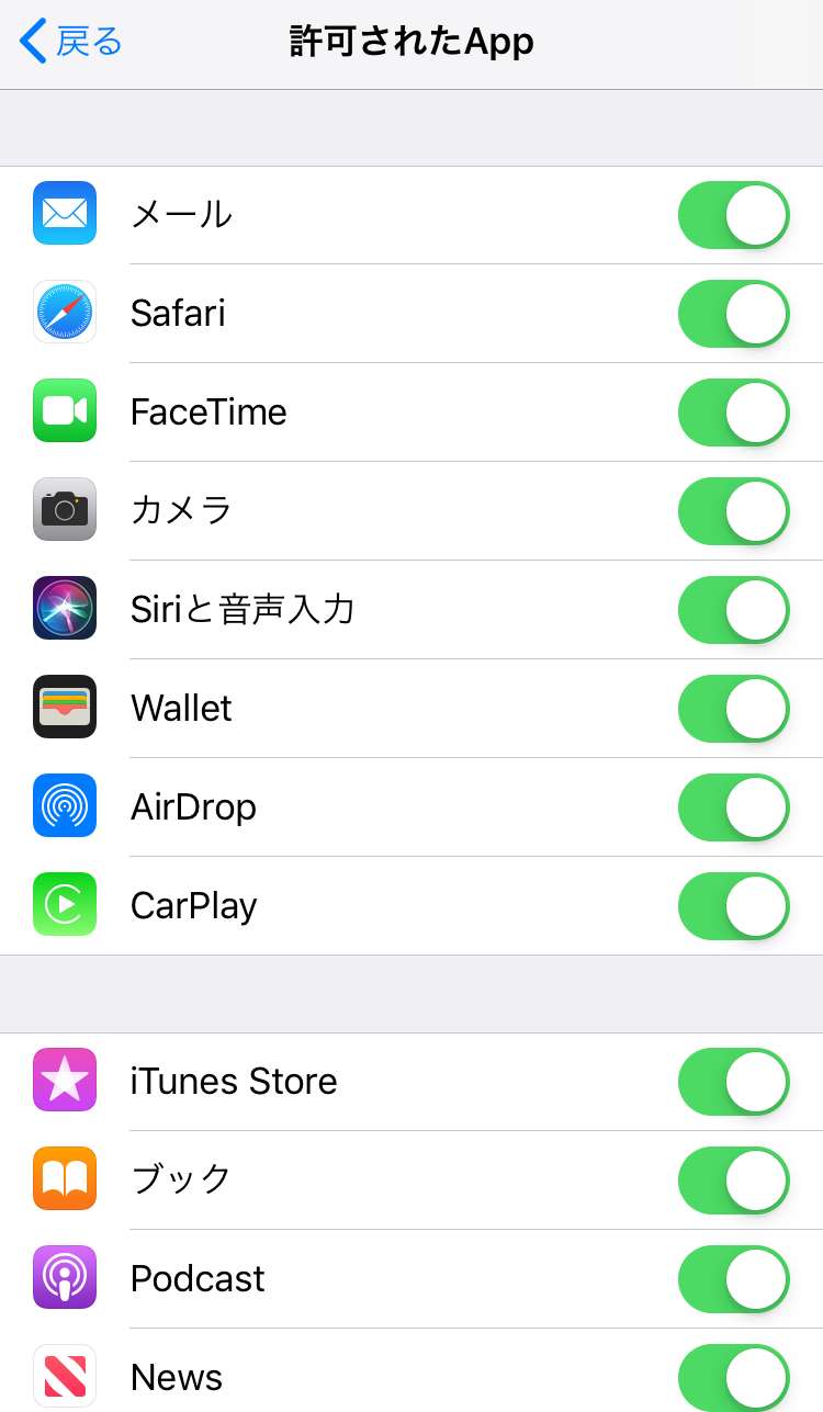 すると、iPhoneを使うにあたっての色々な制限をかける事ができる項目が表示されます。