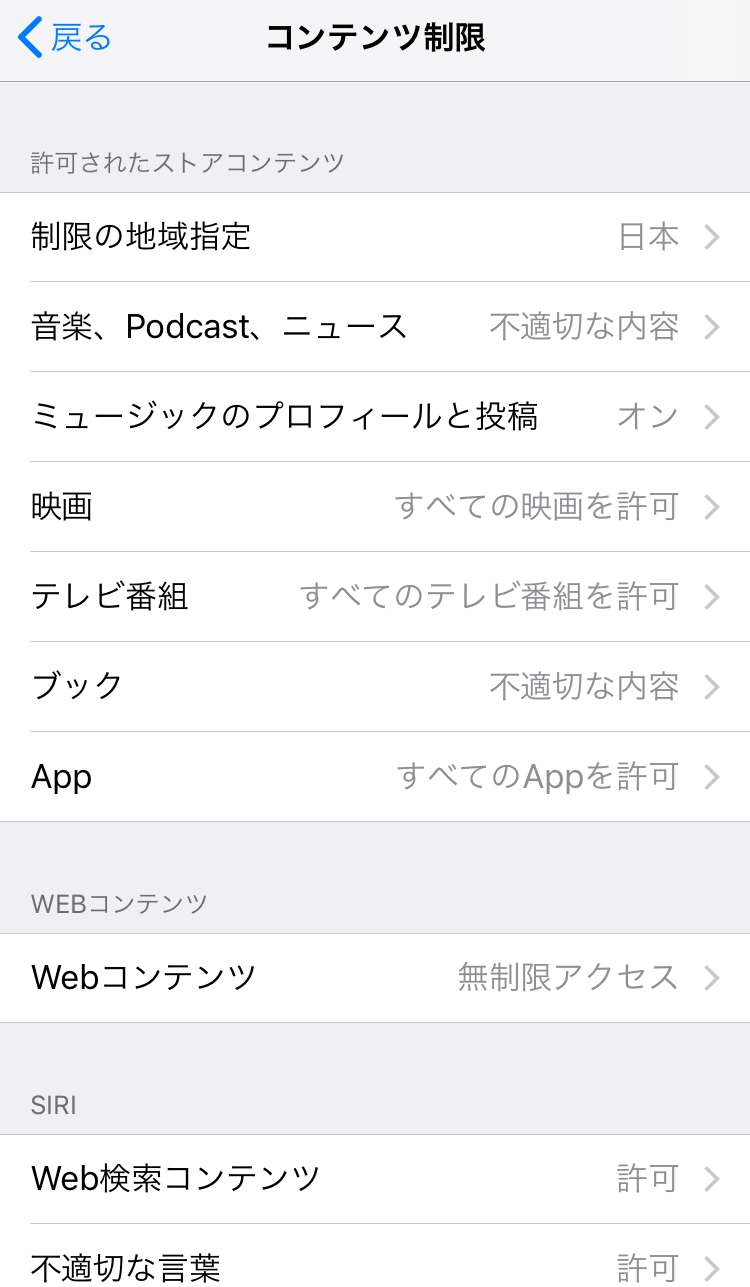 そしてその他にも「コンテンツとプライバシーの制限」の中には色々設定できる事があります。