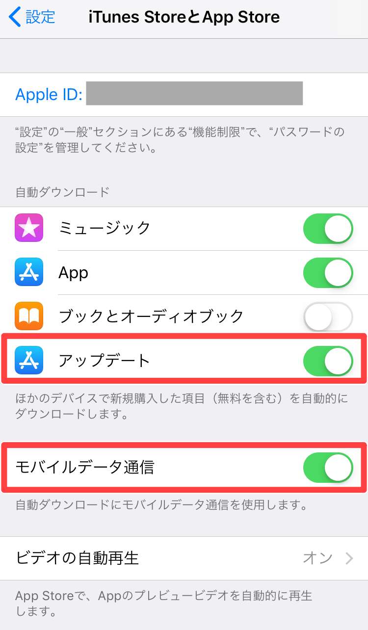 「自動アップデート」も「自動ダウンロード」も自分の「Apple ID」で購入しインストールしたものでなければ適用されませんので注意してください。
