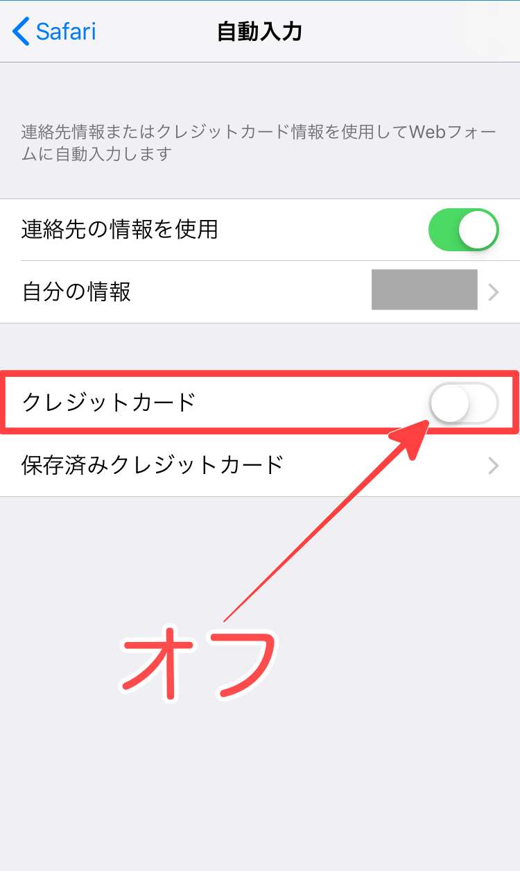 この設定で何かSafariを通してクレジットカードを使って決済を行う時に自動入力が行われる事はありません。