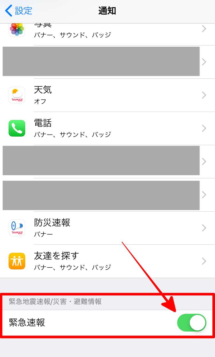 エリアメールが来ない・鳴らない場合は緊急速報が「オフ」になっているはずなので、対処法としては設定を「オン」にするだけです。
