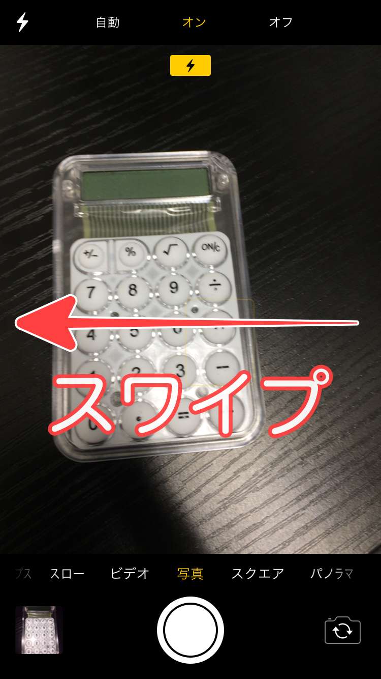 iPhoneのカメラアプリでフラッシュを設定する方法がいたってシンプルです。