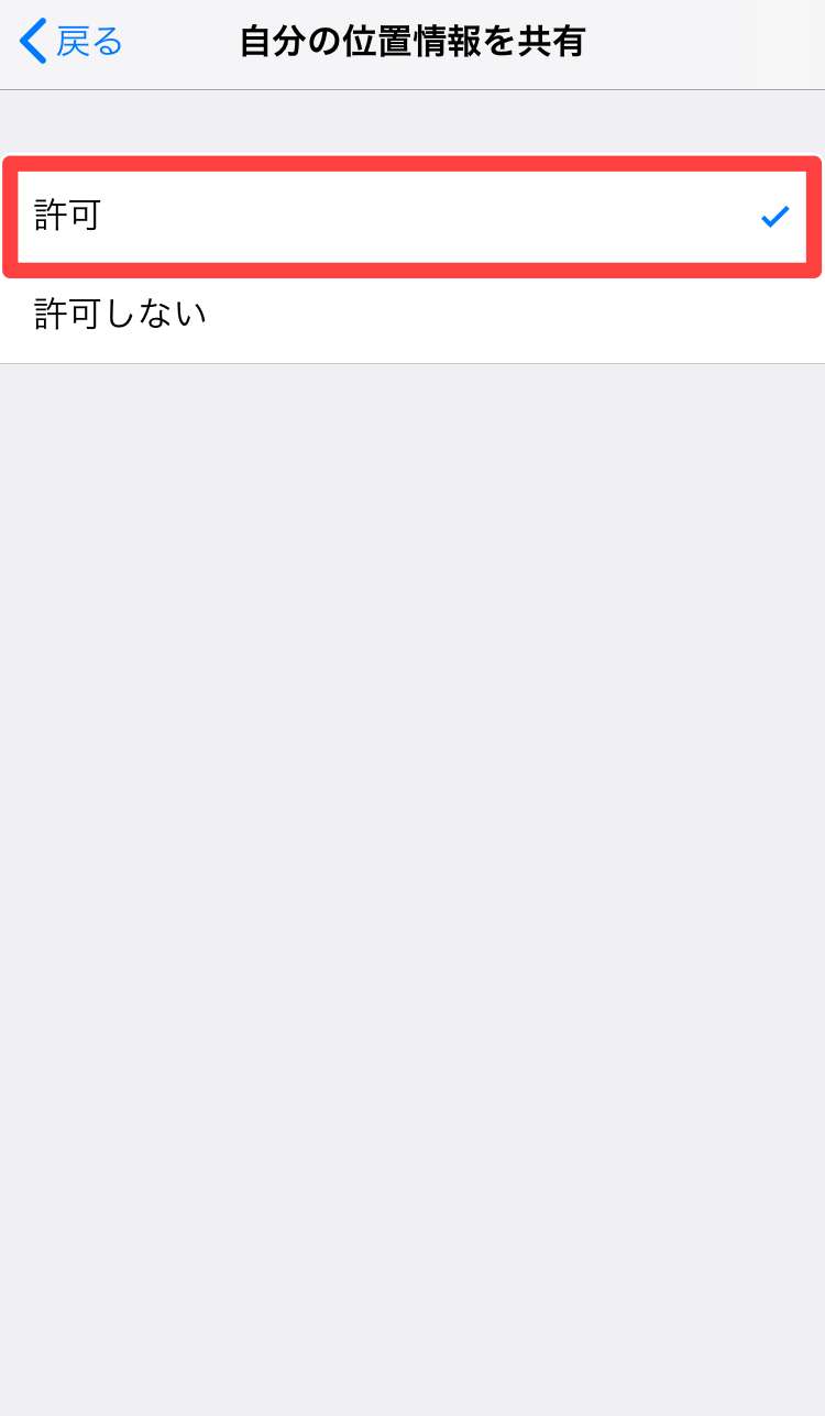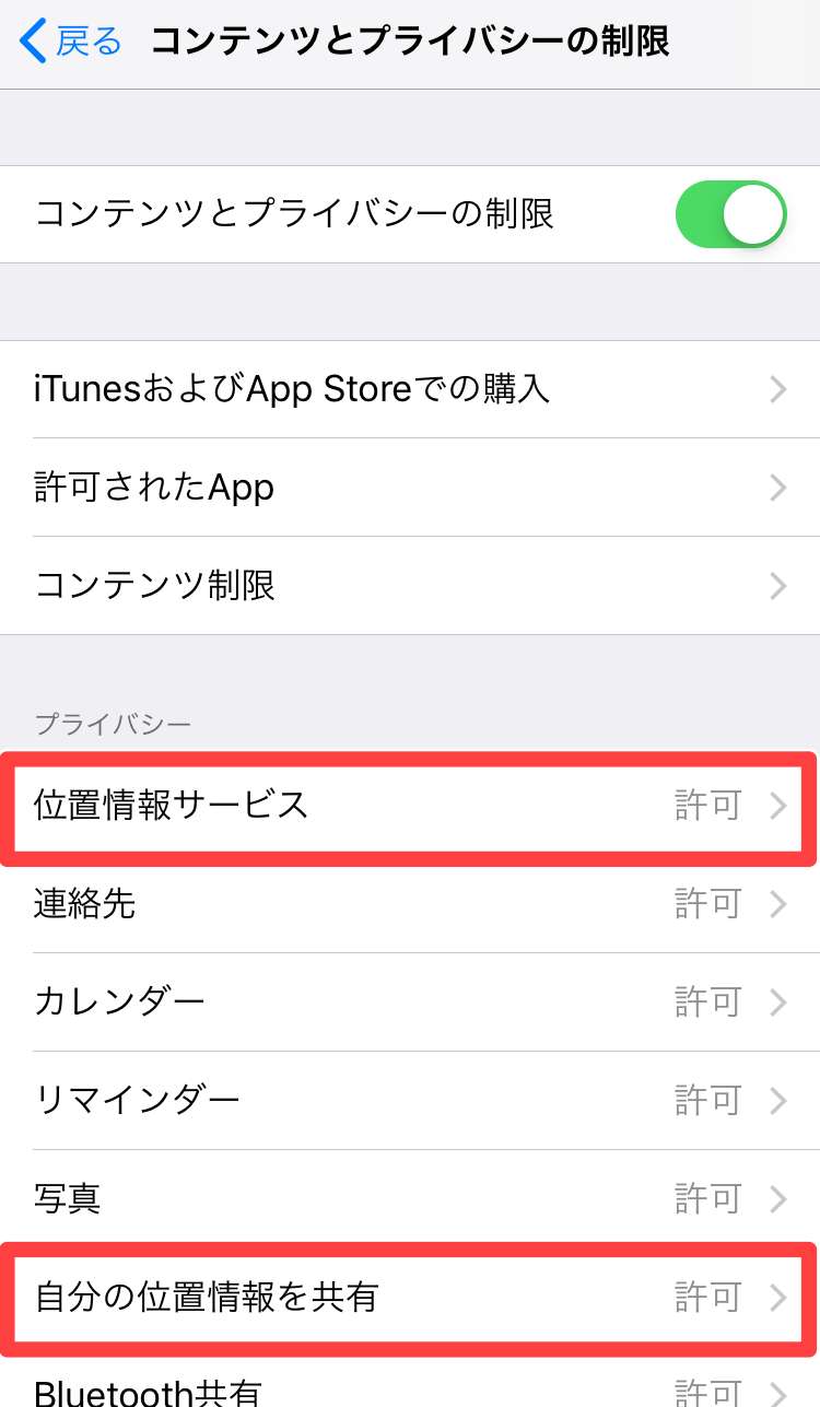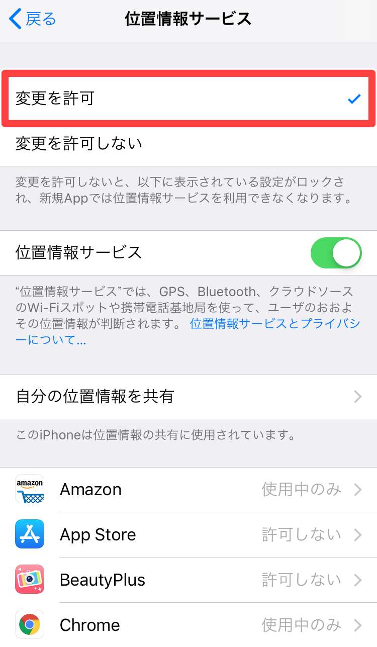 位置情報共有設定の確認その2:位置情報サービスの可否