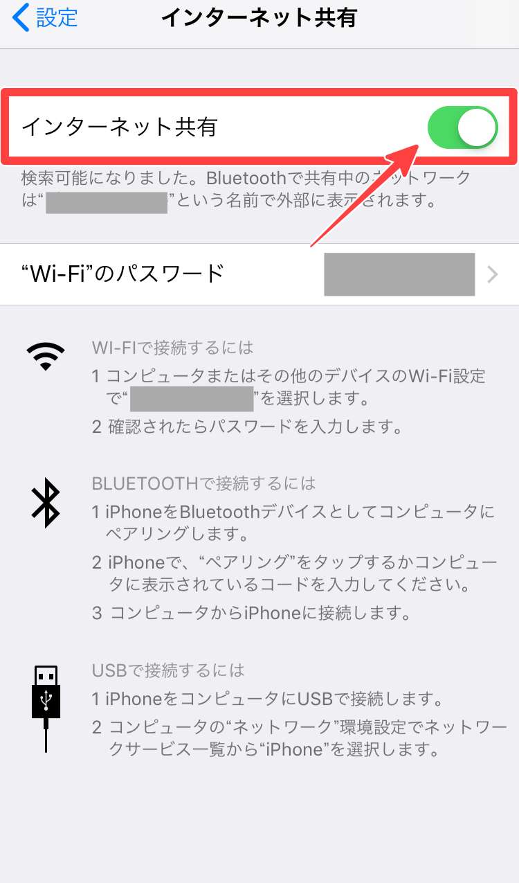 iPhone「インターネット共有(テザリング)」の設定方法