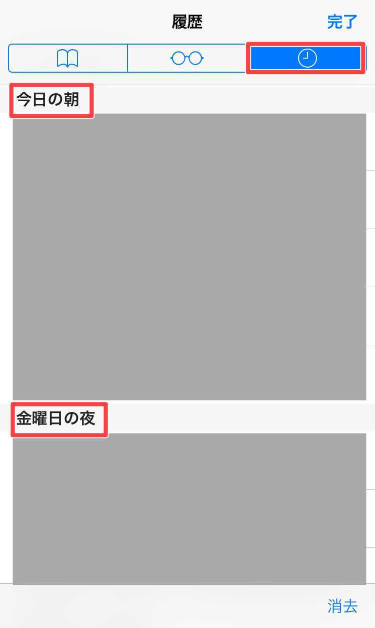 そして過去の閲覧履歴を削除したい場合は画面下に表示されている「消去」をタップすると削除する事ができます。