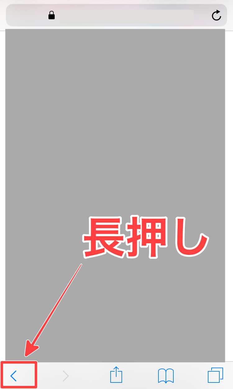 まず初めに履歴の確認をしたいタブの左下にある「<(戻る)」マークを長押しします。