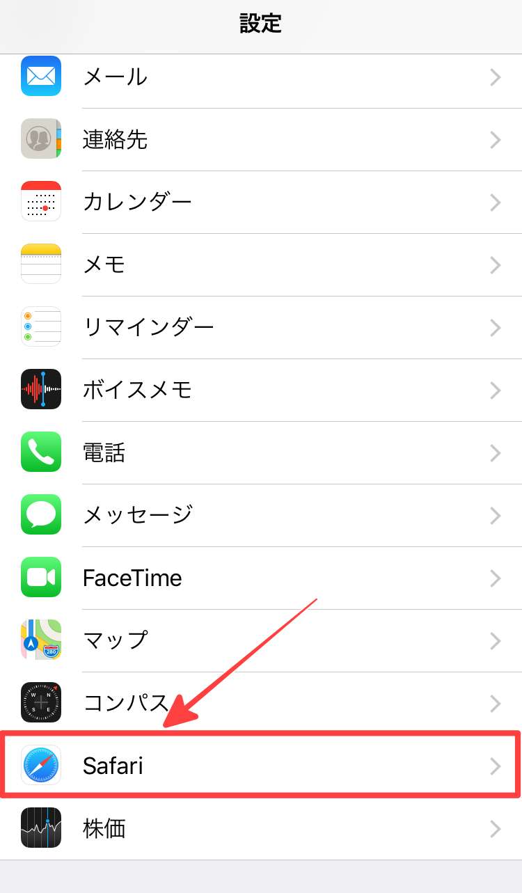 まず初めに「設定」アプリを起動して「Safari」をタップします。