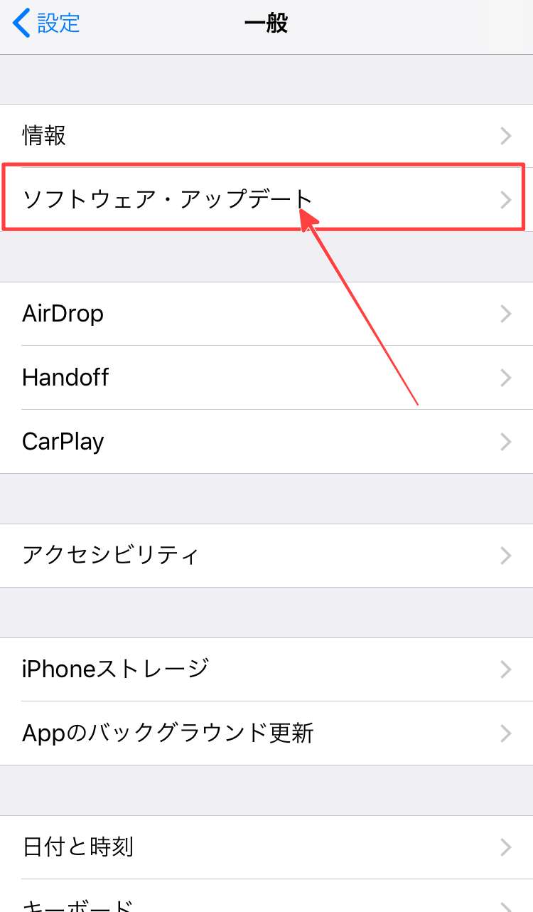 ここでiOSのバージョンが最新でない場合はバージョンアップをしましょう。