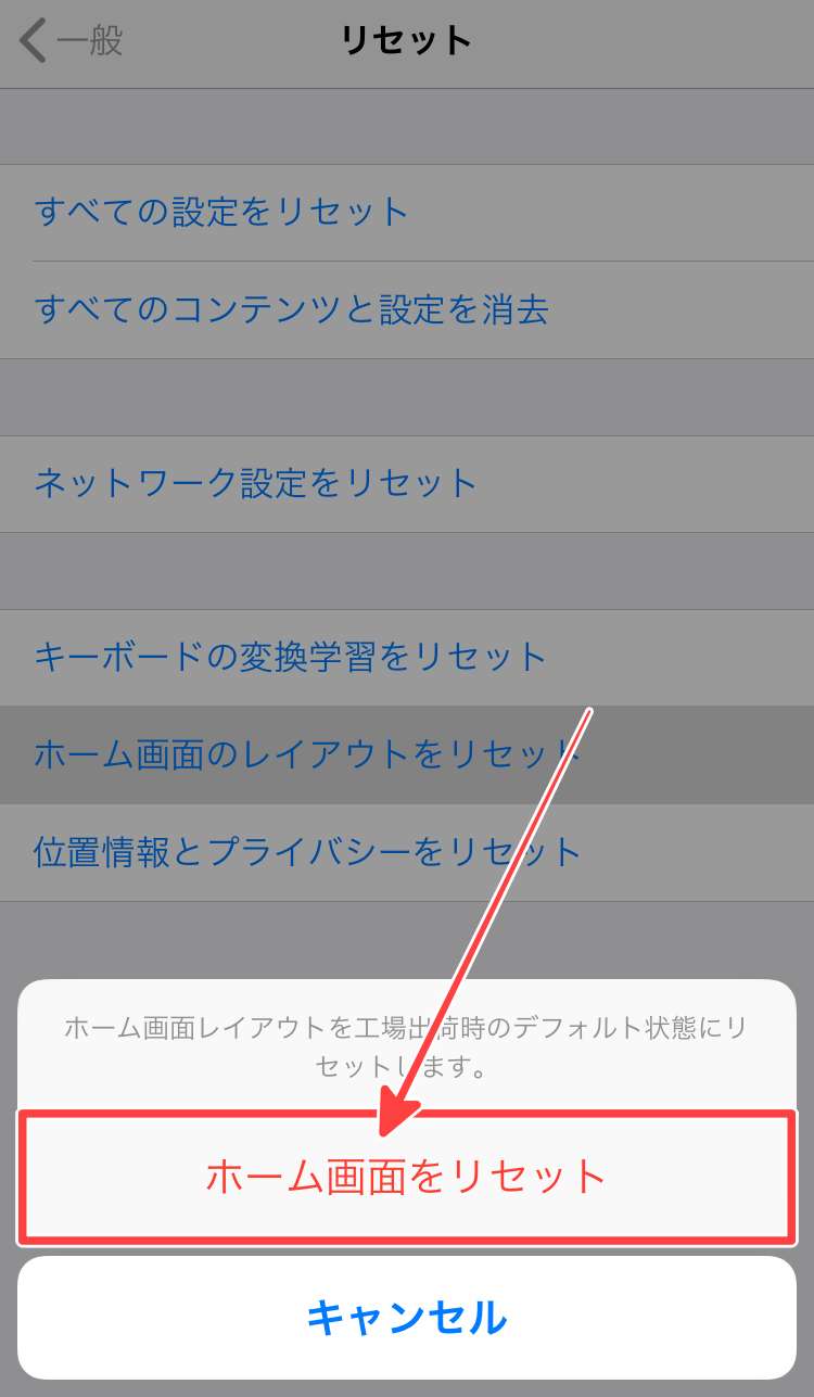 「ホーム画面をリセット」するとインストールしてあるアプリが規則正しく表示されますので、LINEアプリがあるかチェックしましょう。