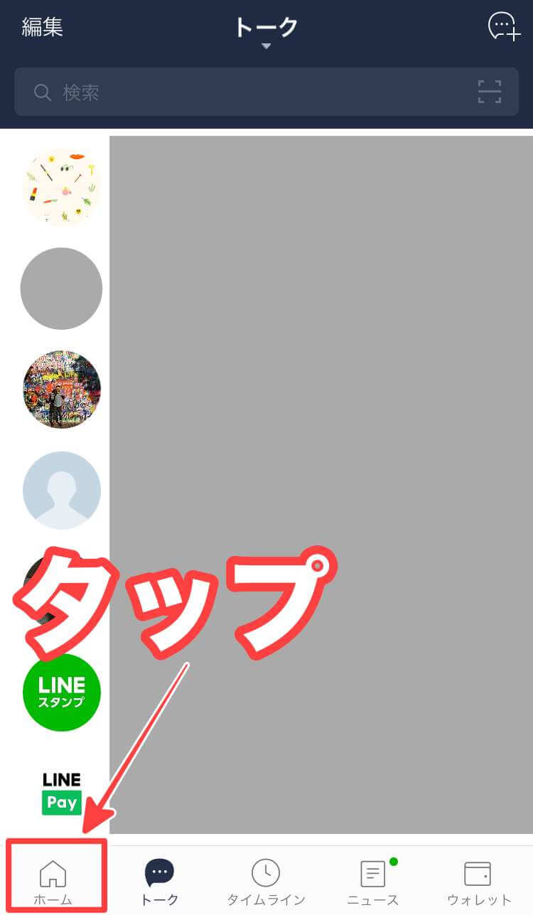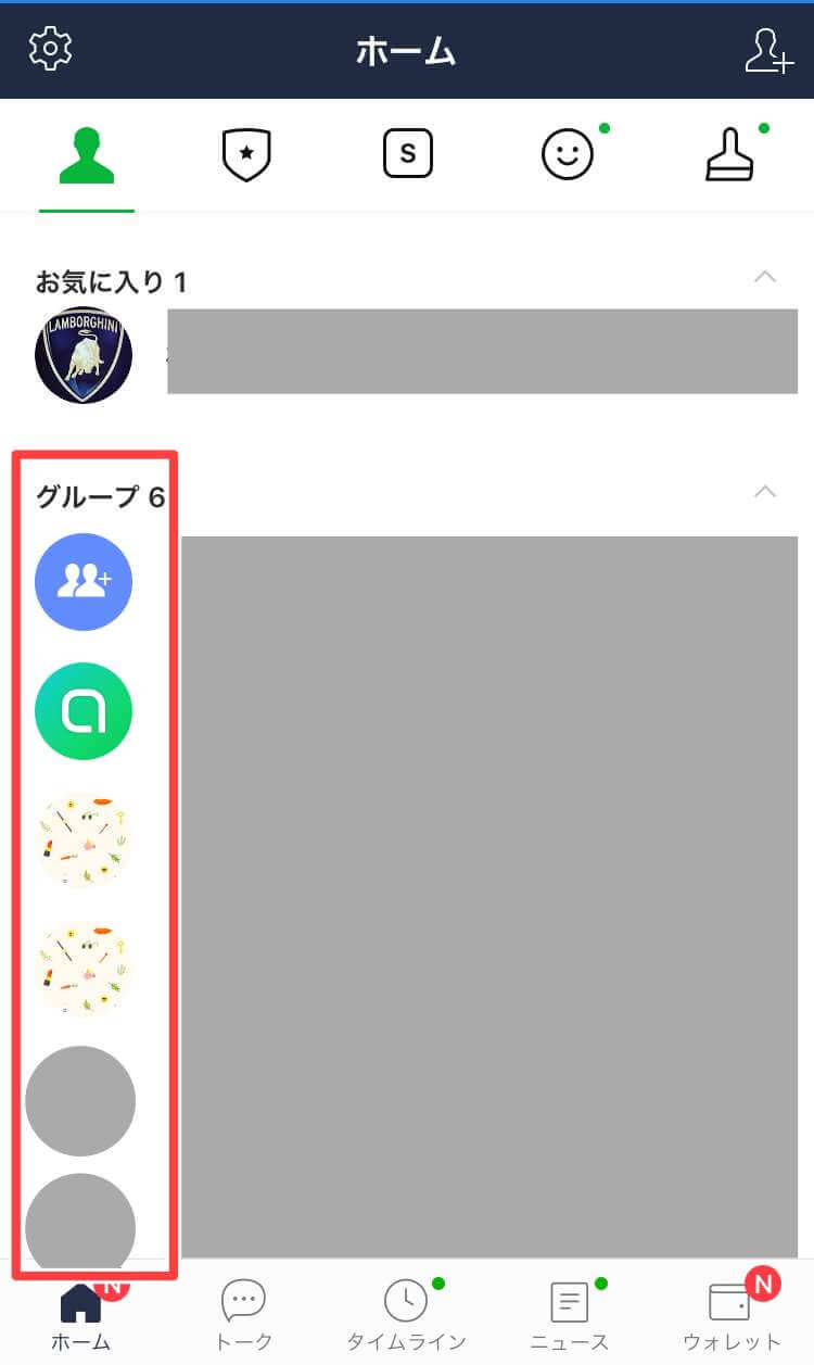 「ホーム」をタップして「グループ」と書かれてあるところを見ると現在参加しているLINEグループを確認することができます。