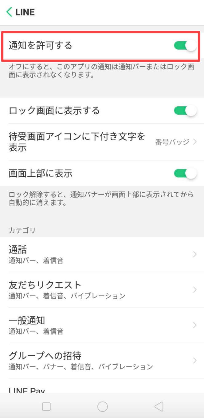 AndroidスマホでLINEアプリのプッシュ通知をオフにする設定