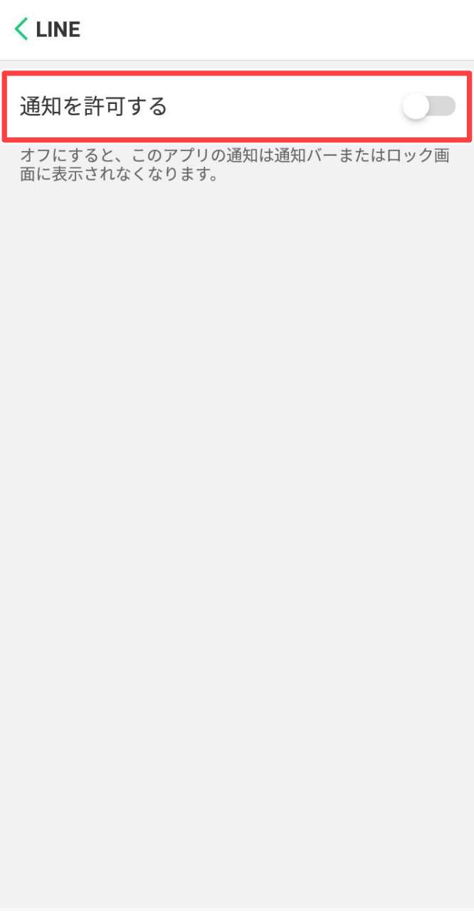 「設定アプリ」>「通知とステータスバー」>「通知を管理する」>「LINE」>「通知を許可する」をオフ