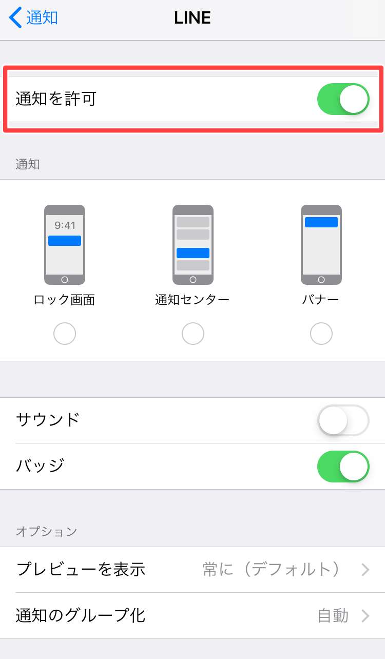 iPhoneでLINEアプリのプッシュ通知をオフにする設定