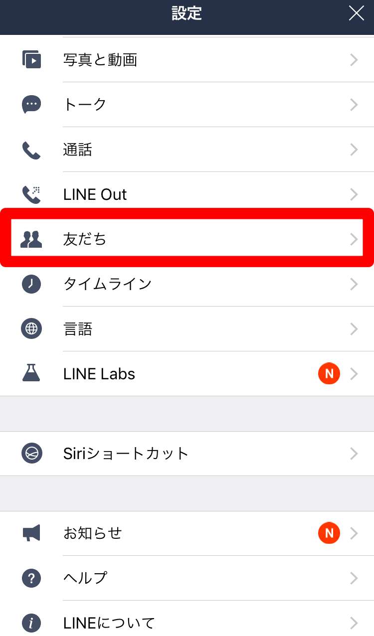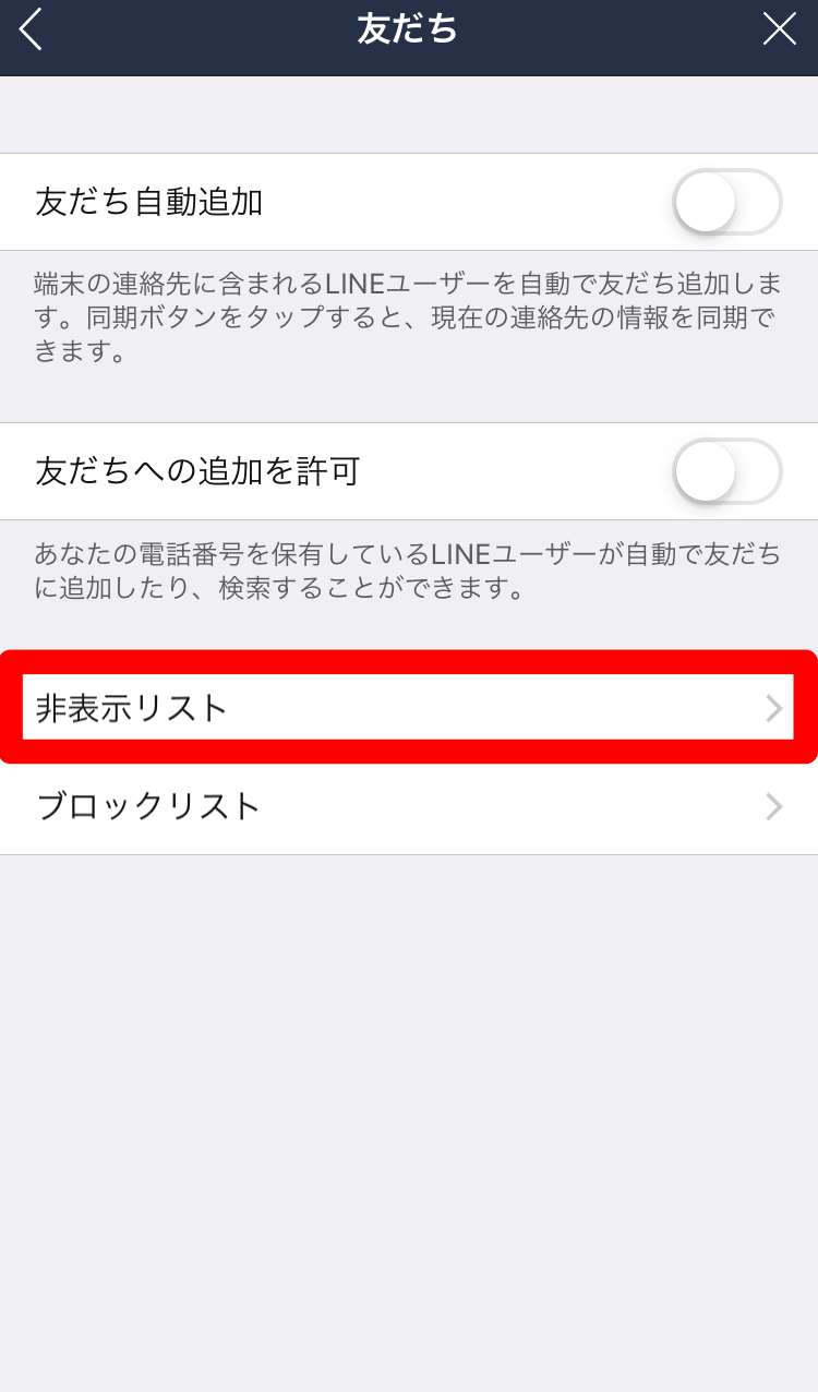 ①:非表示にした友だちの解除方法