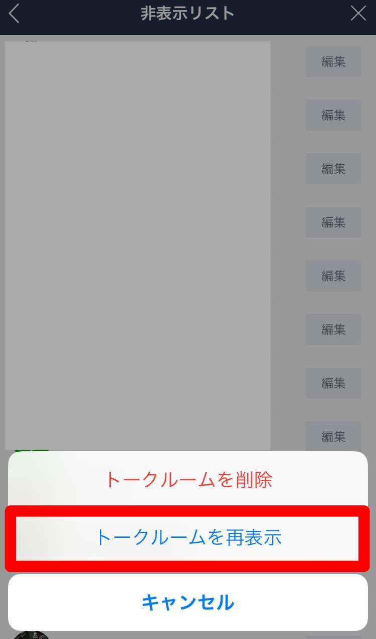 ③:非表示にしたトークを解除する方法