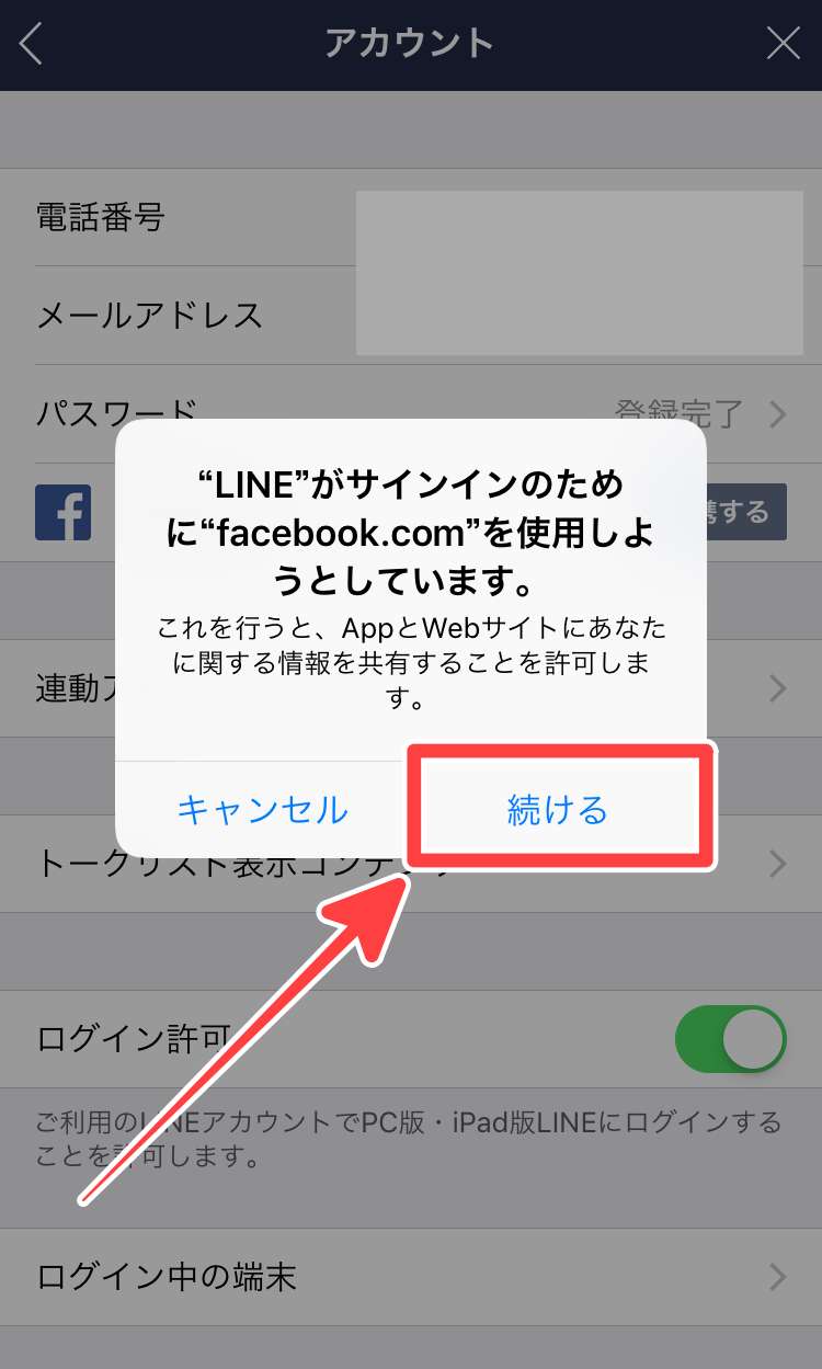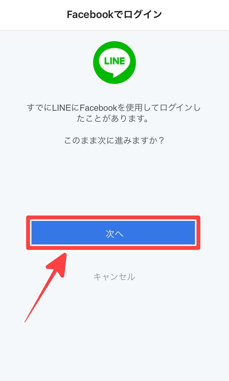 次にLINEを開いて、もう一度Facebookで認証すれば、希望したFacebookアカウントでログインできるはずです。