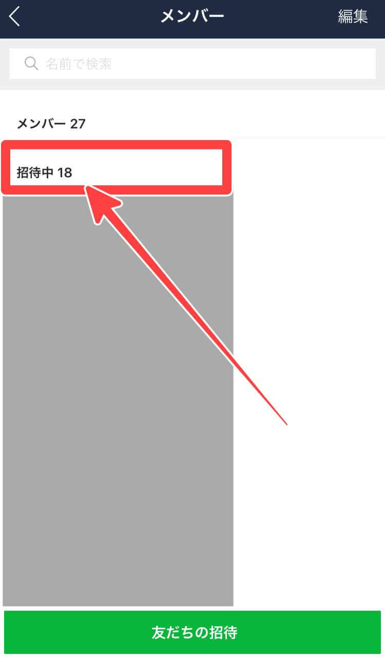 招待中になっているかどうかの確認は、LINEグループのメンバー横の数字をタップすると参加メンバー一覧が表示されるので、その一覧の後半で確認することができます。