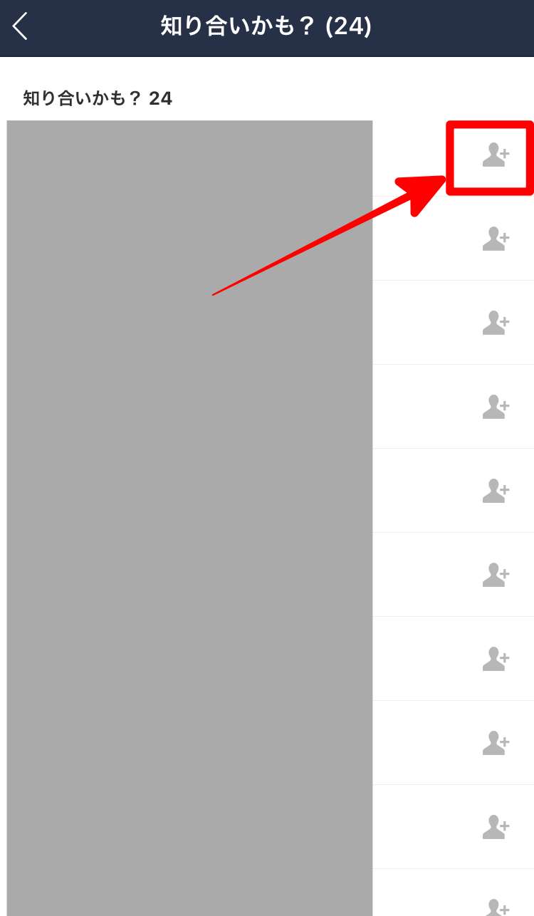 「知り合いかも?」に表示されている相手が本当の友だち・知り合いである場合は右の追加ボタンをタップすると簡単に追加することが出来ます。