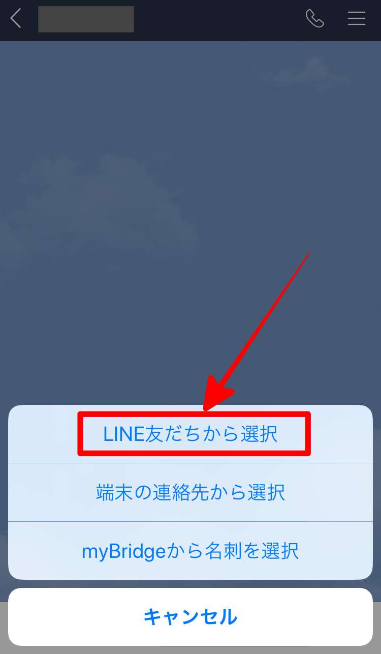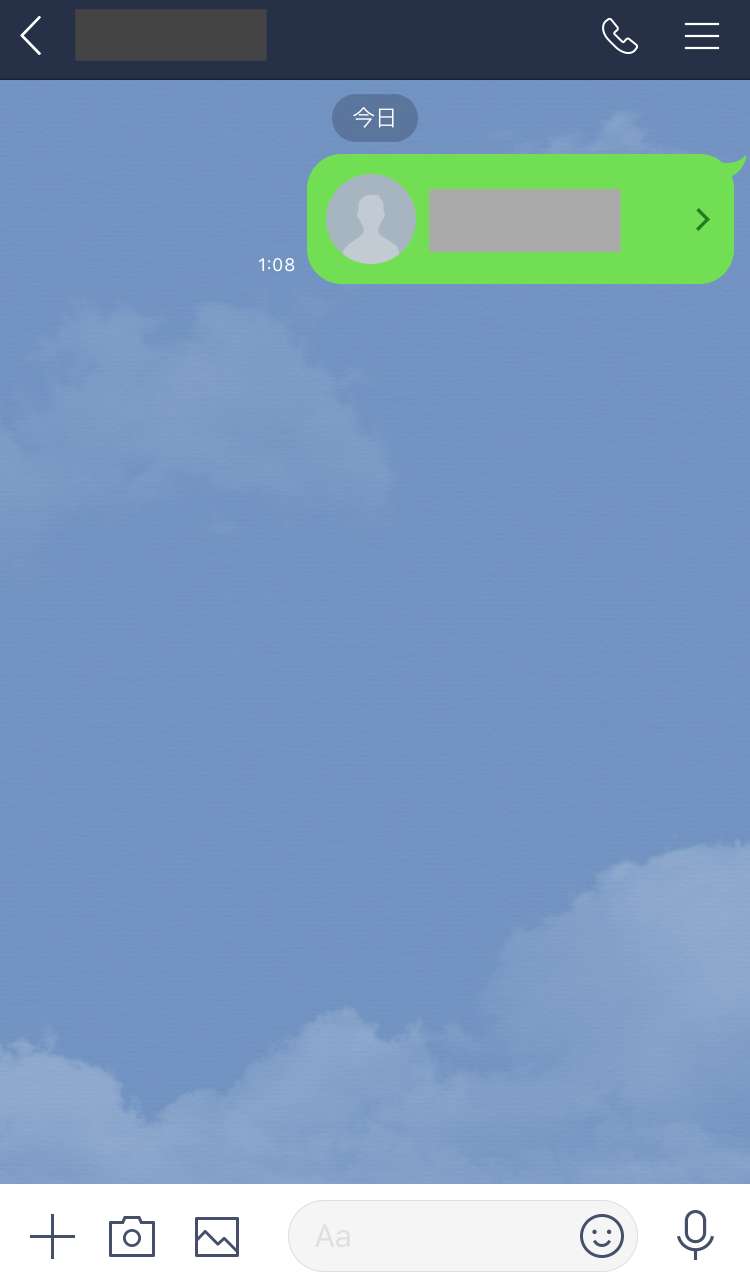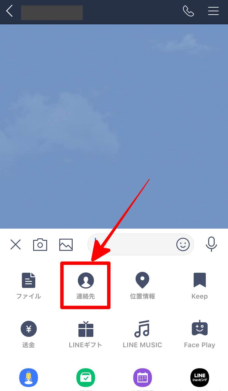 LINEではトーク上の「連絡先」から共通の友達に追加してもらう方法があります。まず、送信したい相手のトーク画面を開きます。その後、
