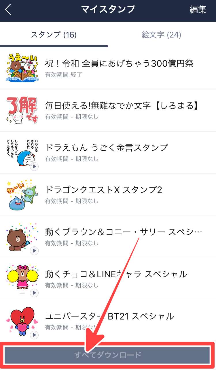 ちなみに有効期限が終了しているものは再ダウンロードする事が出来ませんので注意してください。着せ替えに関しても同様の手順で再ダウンロードする事ができます。