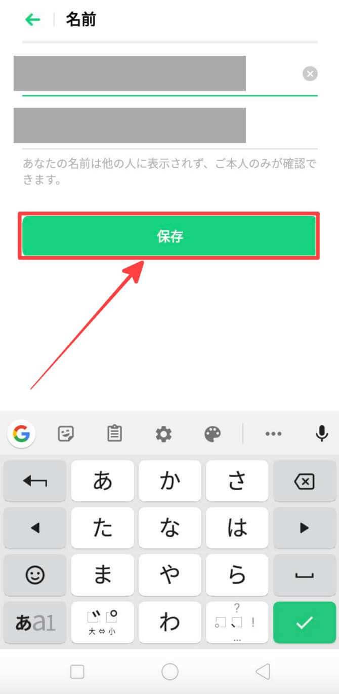 すると「名前」の入力画面が表示されますので「名」「姓」それぞれを入力して最後に「保存」をタップします。