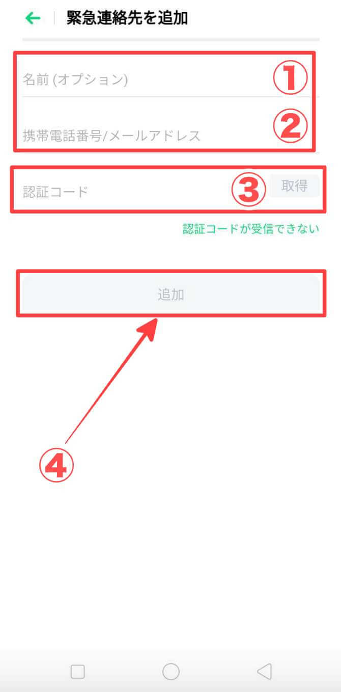 以上の項目が表示されますので、連絡の取る事ができる端末の情報を入力しておきましょう。