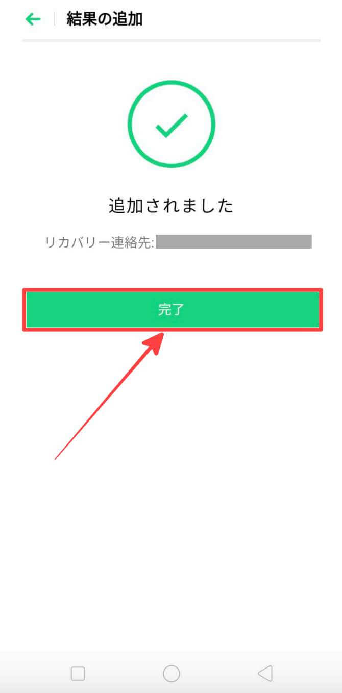無事、「復旧連絡先を追加」ができると以下の様に「追加されました」と表示されます。