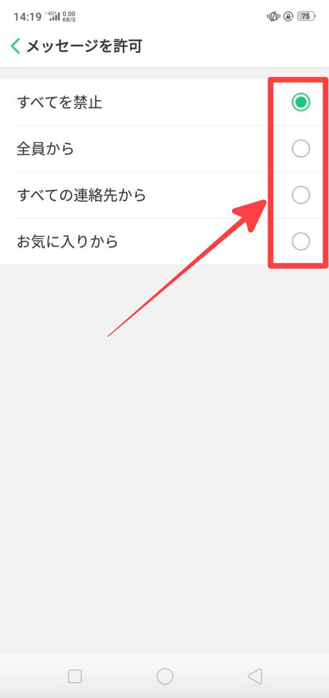 ここで設定したカテゴリーの人からはメッセージの通知を許可する事ができます。