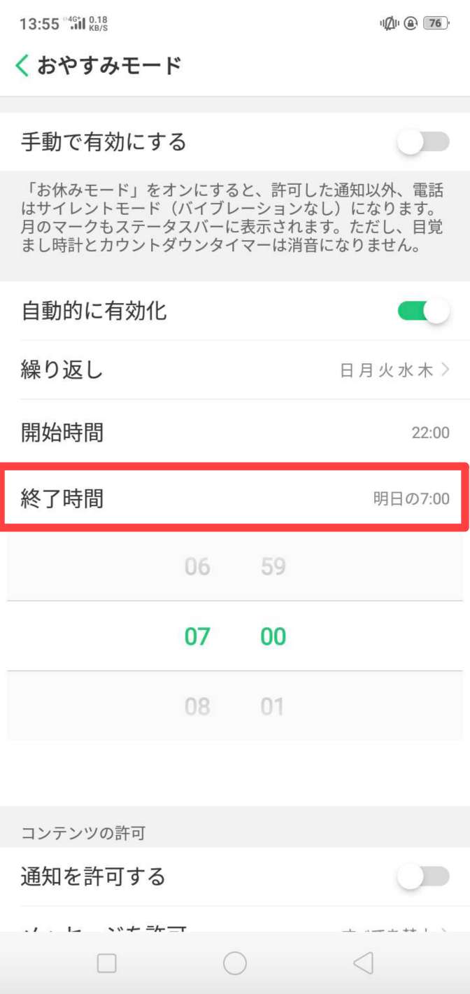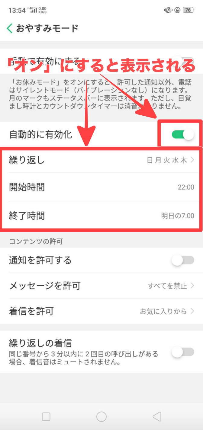 「OPPO」スマホの「おやすみモード」を自動で使う場合は、