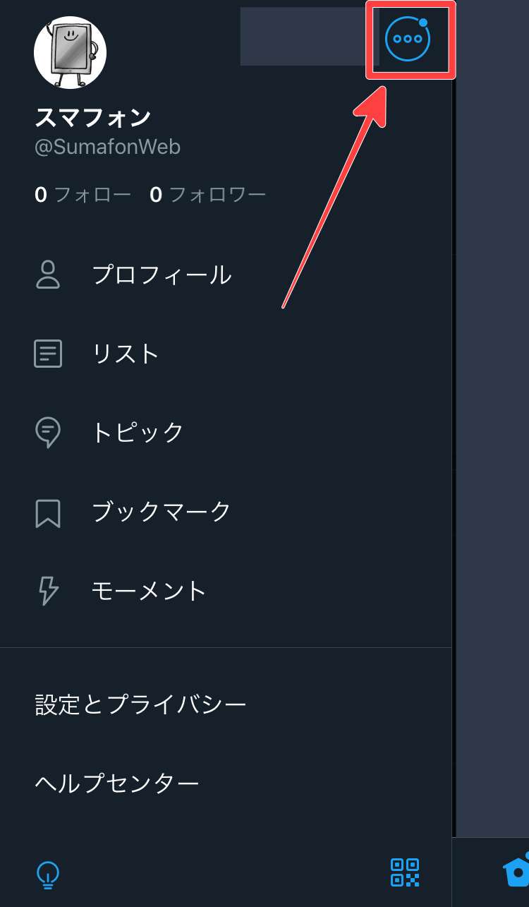 まずはじめにアカウントを新規で追加したい場合は、自分のアイコンをタップした後、右上の「…」をタップします。