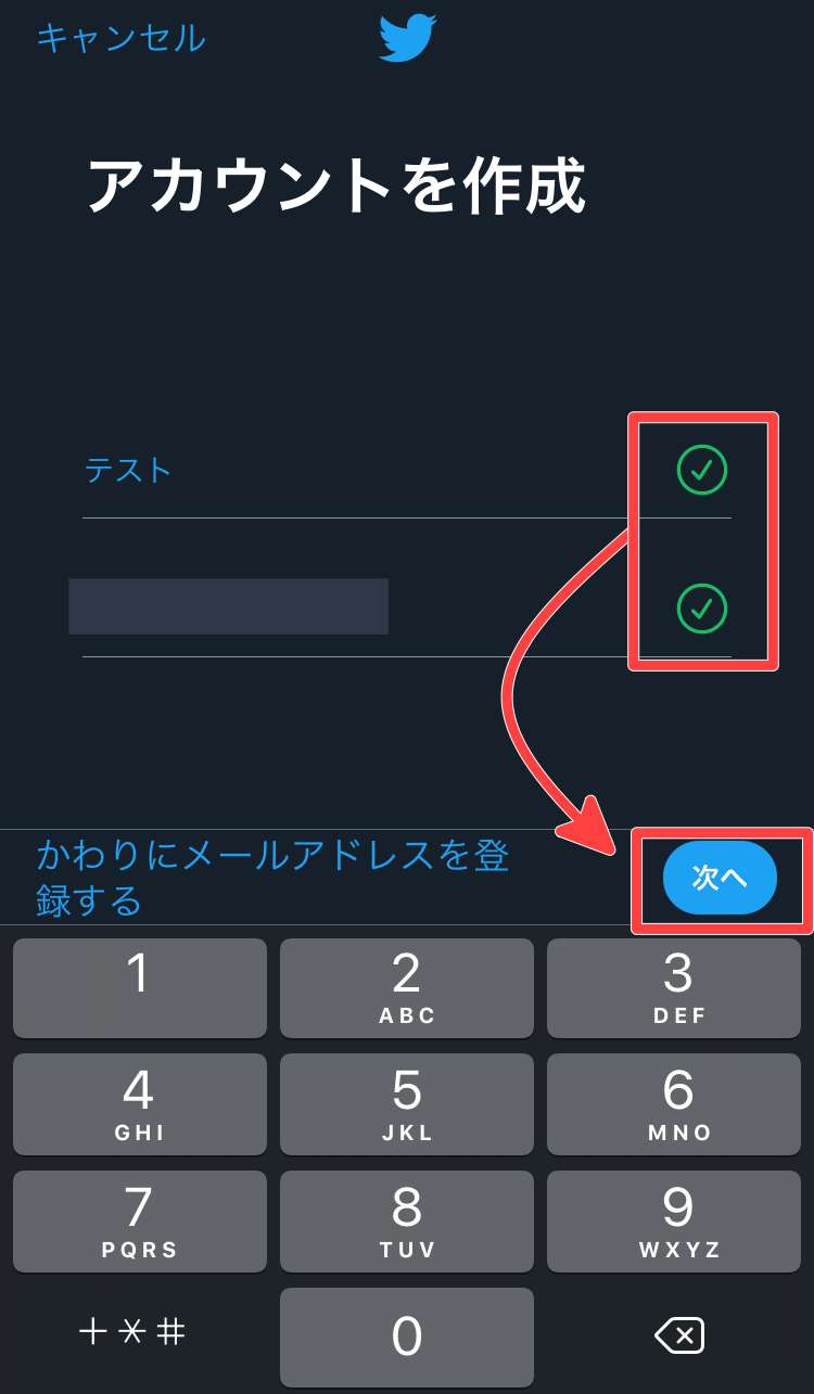 それぞれを入力したら「次へ」をタップして進みます。