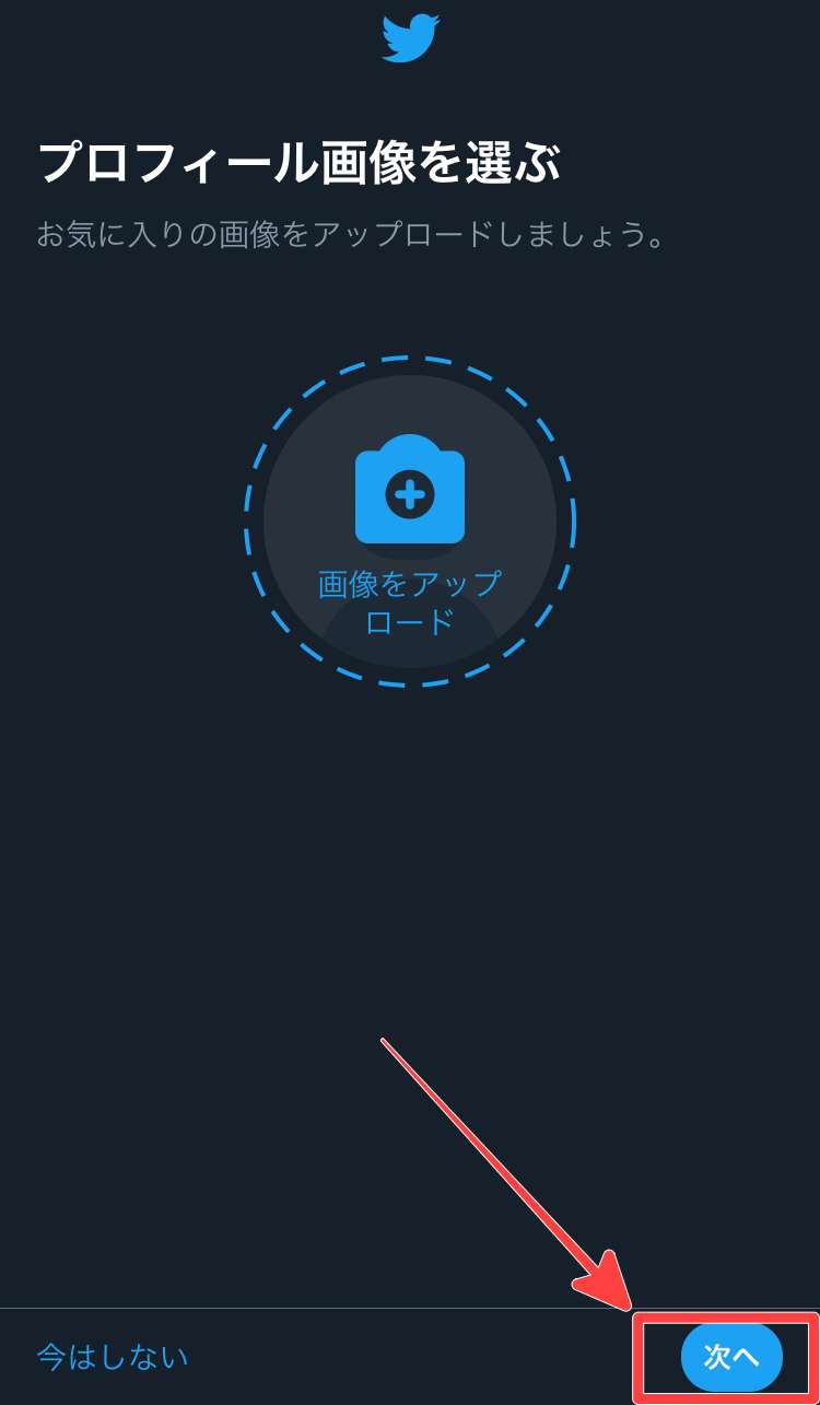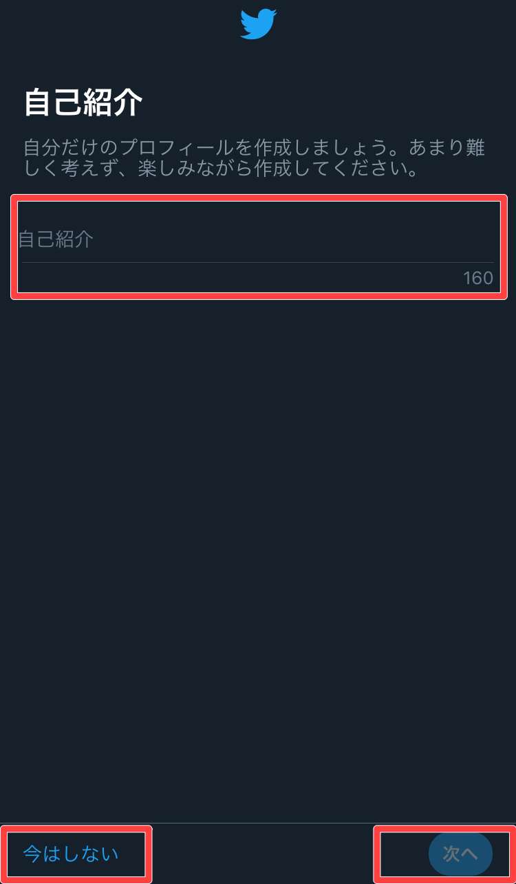 次に「プロフィール画像を選ぶ」、「自己紹介」のページに変わります。