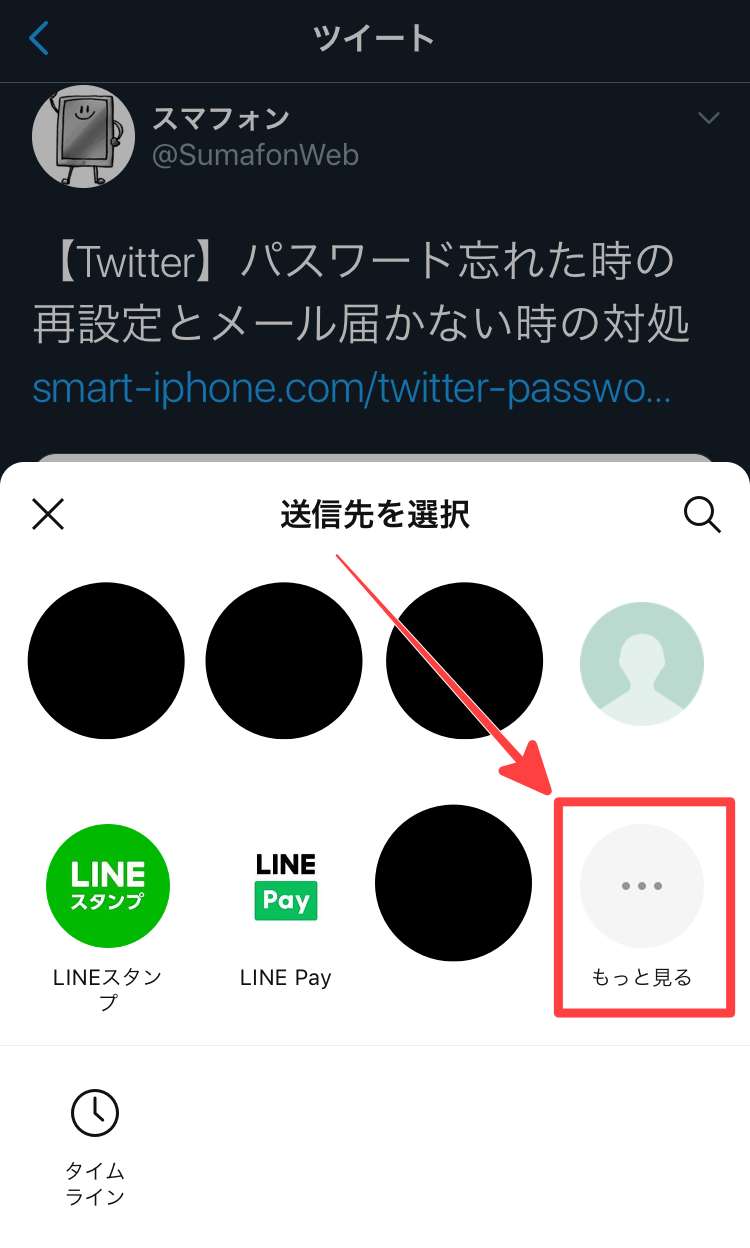 共有したい相手がいない場合は、「もっと見る」をタップするとLINEアプリに遷移しすので、共有相手を選びます。