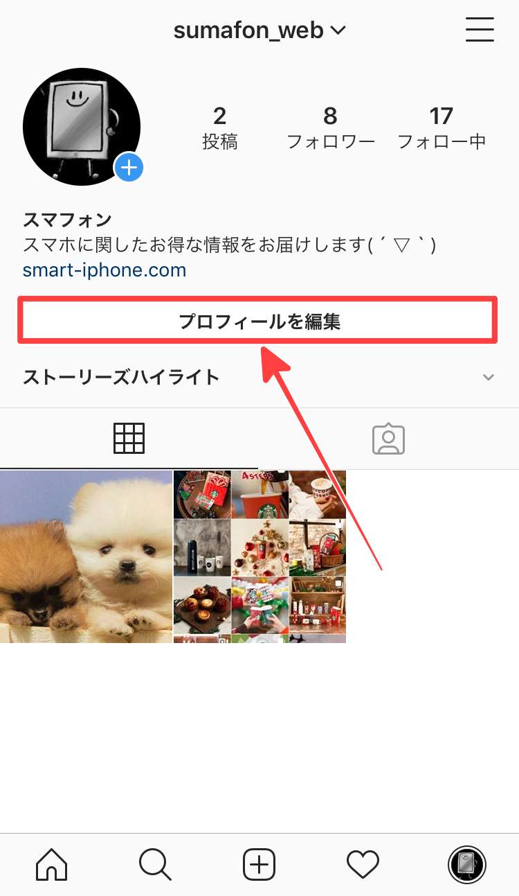 と言う事になりますので、このURLをInstagramのプロフィール画面に貼り付けてリンクさせる事になります。