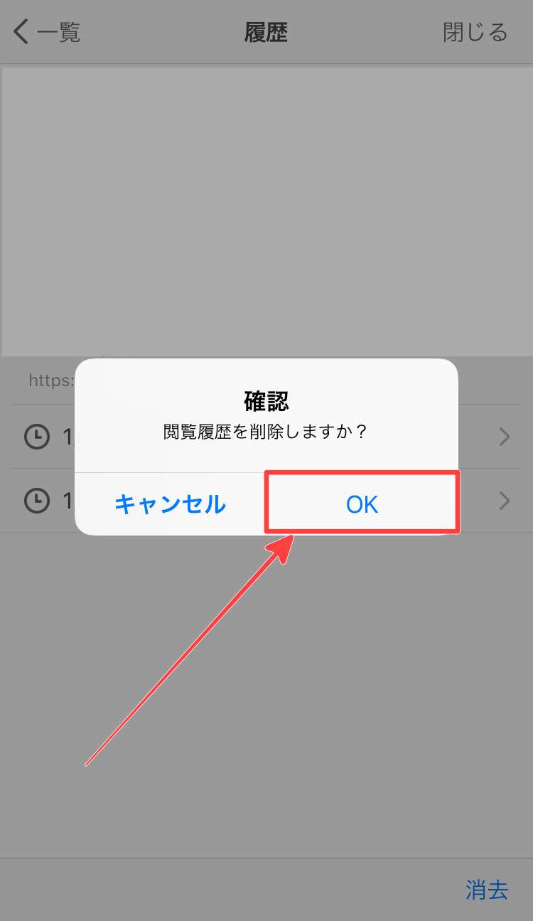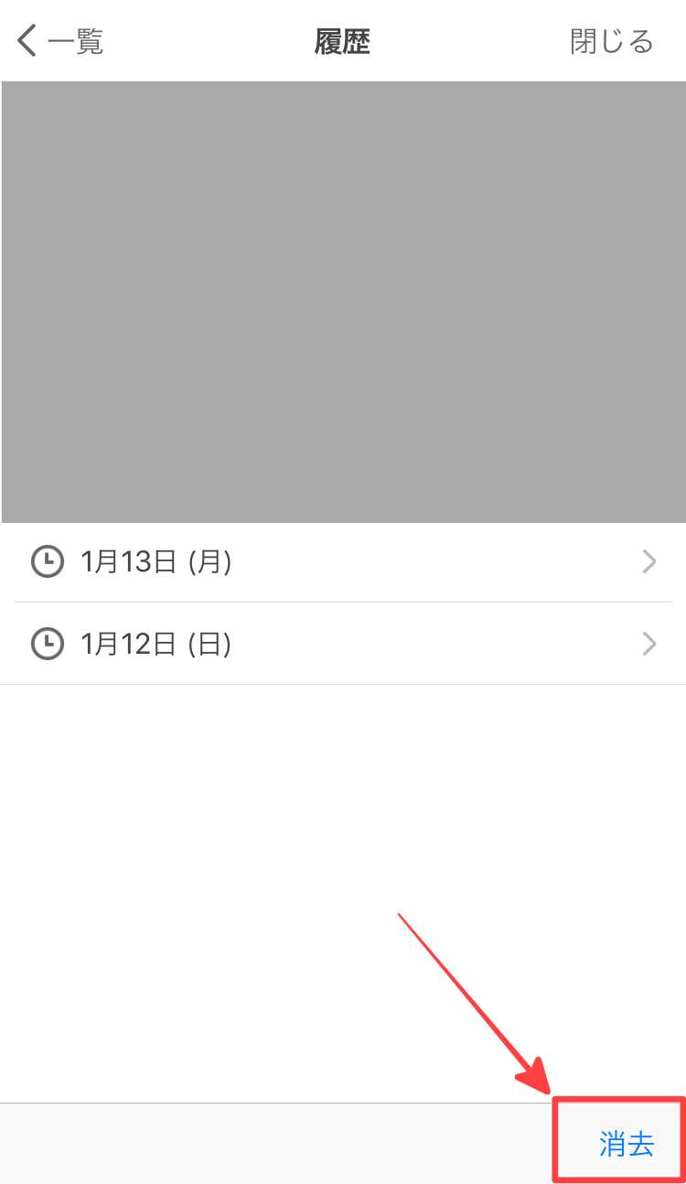 もし、この閲覧履歴を削除したい場合は、「履歴」画面右下に表示されている「消去」をタップすると閲覧履歴を削除できます。