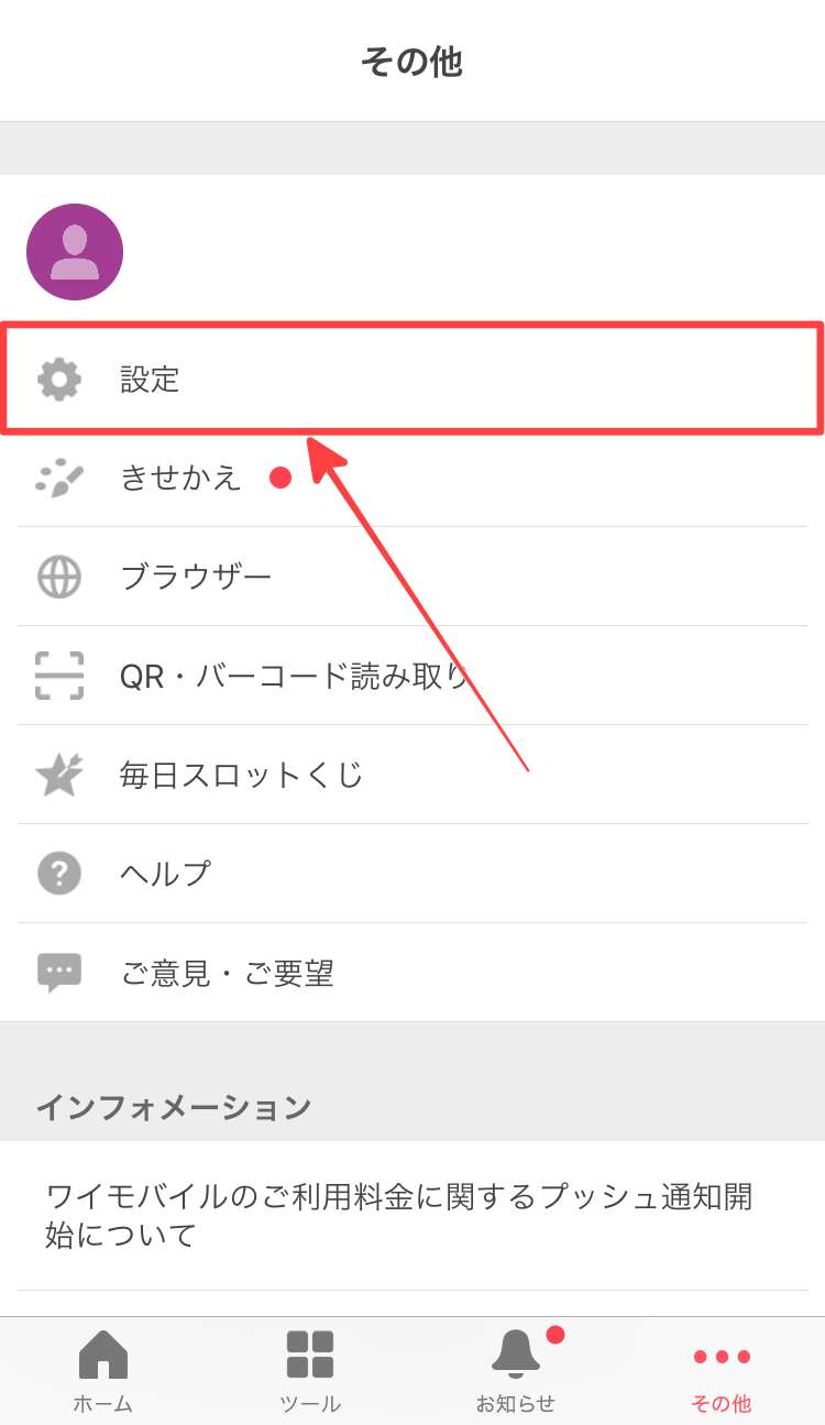 Yahooアプリを起動し右下にある「…」をタップして、次の画面で「設定」をタップします。