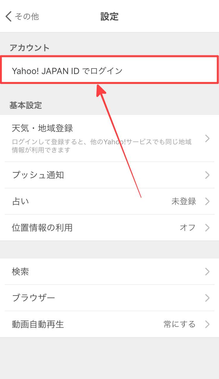 「…」>「設定」>「Yahoo! JAPAN IDでログイン」へと進みます。